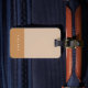 Modern minimalist luggage tag featuring bold typography and beautiful earth toned and blush pink colour scheme. Customise your details and give as the perfect travel gift!