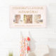 This simple, modern banner says congratulations to the grad, with room for three of the graduate's photos in a horizontal photo grid. Bold gold coloured text appears on a trendy, blush pink background for a stylish look that is sure to be noticed and enjoyed at your graduation party.