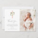 Blush Pink Cross and White Flowers | Photo Baptism Thank You Card