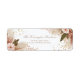 Add a touch of whimsical elegance to your mail with this stunning botanical composition. The design features a lush arrangement of soft blush pink dahlia bloom, earthy terracotta dried palm fan, and deep mahogany leaf clusters. Shimmering gold glitter stardust and delicate pink flower bud sprigs are scattered across the crisp white background, creating a sense of luminous movement and high-end charm. This return address label is the perfect finishing touch for wedding stationery, seasonal holiday cards, or refined personal correspondence. These motifs ensure your envelopes stand out with a polished, cohesive look that captures a modern bohemian essence from the moment they are handled.