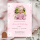 Blush Pink Daisy Bow Girl 1st Birthday with photo Invitation