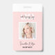 Modern ID badge with space for your business name or logo, your name and photo. This fully editable blush pink and white name and photo badge is great to use for your lash salon, beauty spa, makeup studio and more!