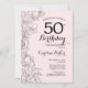 Blush Pink Floral 50th Birthday Party Invitation. Minimalist modern design featuring botanical outline drawings accents and typography script font. Simple trendy invite card perfect for a stylish female bday celebration. Can be customised to any age. Printed Zazzle invitations or instant download digital printable template.