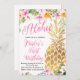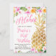 Blush Pink Floral Aloha Pineapple First Birthday Invitation