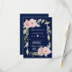 Blush Pink Floral Bloom Navy Blue Wedding RSVP Card