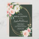 Design features beautiful watercolor floral elements in shades of blush pink rose, white flowers and green leaf elements.