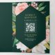 Blush Pink Floral Emerald Green QR Code Wedding Tri-Fold Invitation