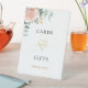 Blush pink floral eucalyptus greenery cards gifts pedestal sign