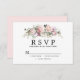 Rustic sprig of pink roses and white hydrangea flowers decorates the top of this pretty floral RSVP card. A soft pink watercolor wash covers the back of it. This is part of the Summer Romance collection that contains many coordinating items that you can use to create a elegant and unique wedding stationery package. You should see a link to it on this page. If you don't see the page or you need help with an item, please contact me.