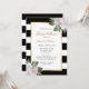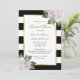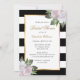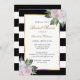 Complement your blush and black wedding party with these floral black and white striped bridal shower invitations featuring blush pink flowers. Blush floral bridal shower invitation. Black and white floral bridal shower invitation.