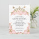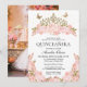 Elegant Glam Blush Pink Floral Gold Tiara Quinceanera Invitation