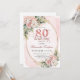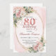 Blush Pink Floral Greenery Gold Glitter 80th Bday Invitation