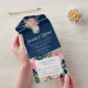 Blush Pink Floral Mason Jar Navy Blue Wood Wedding All In One Invitation