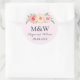 Blush Pink Floral Monogram Wedding Classic Round Sticker