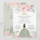 Blush Pink Floral Princess Sage Green Quinceañera Invitation