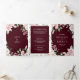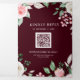 Blush Pink Floral QR Code Burgundy Wedding Tri-Fold Invitation