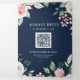 Blush Pink Floral QR Code Navy Blue Wedding Tri-Fold Invitation