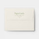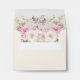 Elegant blush pink watercolor floral and sage green leaves on cream-coloured wedding envelope with the name and return address printed on back flap in a hand-written brush script font. Contact us for help with customisation or to request matching or coordinating products.