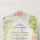 Elegant watercolor white and green hydrangeas, pink and cream roses, daisies and greenery are featured on these blush pink interior tri-fold wedding invitations that feature your details in chic lettering in sections and a detachable RSVP card for guests to complete and return. **REMEMBER to put a postcard stamp on the RSVP card section and a regular stamp on the mail-to guest address section!