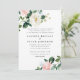 A classic floral wedding invitation in pastel watercolor, framed by a bouquet of painted blooms in blush pink, white and dusty blue. Your wedding details are highlighted with all black lettering.