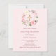 Blush pink background, decorated with watercolored pink and white flowers in a wreath and a golden cross. Personalize and add a name and details.