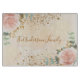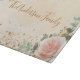 A golden watercolored background. Decorated with rose gold and blush pink florals, flowers (roses)and green watercolored eucalyptus leaves, sprigs, greenery and faux gold sprigs. Golden glitter dust. Personalise and add your family name. The name is written with a modern hand lettered style script.