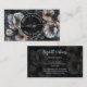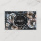 This pretty business card features off white flowers on a dark background. The front displays a logo circle with the name and profession. Perfect for professions such as: Massage therapist – Life coach – Wellness coach – Landscaping – Meditation teacher – Aesthetician or skincare specialist – Yoga instructor- Black Hair Stylist- Boutique-Undertaker