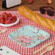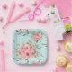 Blush Pink Flowers on Light Blue Paper Plate