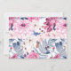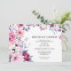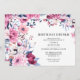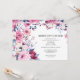 Elegant birthday dinner invitations with a botanical frame. Black text on a white background surrounded by flowers in shades of pink, red and blue.