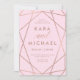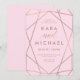 This stylish, modern wedding invitation features a blush pink background with a faux rose gold look geometric design and matching typography.