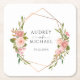 Blush Pink Geometric Floral Wedding Square Paper Coaster