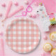 Blush Pink Gingham Check Pattern Paper Plate
