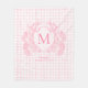 Blush Pink Gingham Floral Crest Monogram Fleece Blanket