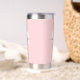 Create Your Own Stylish Modern Custom Girly Blush Pink Name Monogram Travel Mug. This cute and chic travel mug is perfect for anyone with a love for travel and a girly sense of style. The design features a soft blush pink background with a bold white initial on both sides, overlaid by your name in elegant black script for a personalised touch you’ll see from any angle. With its sleek, double-sided monogram and functional design, this mug is great for sipping coffee or tea on the go—whether you're commuting, heading to class, or jet-setting across the globe. All colours can be customised to match your style. A great gift for moms, sorority sisters, best friends, or anyone who loves a little wanderlust with their morning drink!