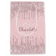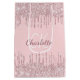 Blush pink glitter drips monogram script luxury medium gift bag