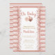 This invite has it all! Oh Baby baby shower invitation with pretty blush pink glitter and stripes. Add name and shower information about the special day. The back repeats the stripes for a trendy look sure to please.