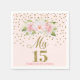 Customisable napkins for Quinceañera 15th birthday party with light blush pink, light pink watercolor flowers and gold glitter confetti.