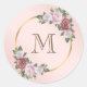 Blush Pink Gold Floral Monogram Initial Classic Ro Classic Round Sticker