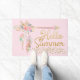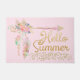 Blush Pink Gold Glitter Boho Feather Hello Summer Doormat