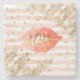 Blush Pink Gold Hearts XOXO Glitter Lips Stone Coaster