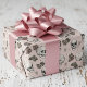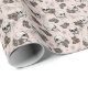 This fun feminine gothic wrapping paper is hand-drawn in black ink by Nathalie Portet, featuring whimsical skulls and blush pink and cream roses and spiderwebs against a blush pink background.