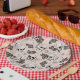 Hand-drawn in black ink, these elegant gothic Halloween paper plates feature a beautiful pattern of skulls, roses and spiderwebs in cream and blush tones, all against an elegant blush pink background. Ideal for Gothic Bridal Showers, Weddings, Engagement parties, etc.