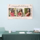 Announce to the world that your favorite grad has reached their milestone with this girly, stunning, simple, modern, personalized photo banner. A fun, playful visual of soft gray script handwriting and cute, playful hearts, along with her name, class year, school, and 3 photos of your choice overlay a light, blush pink background. Personalize the custom text with your grad’s name, school and class year. Choose from indoor or outdoor options. Matching invites, thank you cards, cap toppers, posters, plaques, and other graduation goodies are also available in this trendy and stylish collection. Guaranteed to preserve cherished memories of their special occasion!