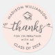 Blush Pink Graduation Modern Thank You Script Cap Classic Round Sticker
