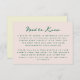 For the epically chic and modern couple, invite guests to a modern and elevated wedding with coastal Italian tennis club vibes in soft shell pink. This additional information enclosure card is sleek and chic with pale pink text to share any additional information with guests like accommodations, dress code, directions and more. This design mixes modern sans serif type with a hand-written style script for an elevated but still casual vibe fit for any chic venue, from beach club to tennis club and beyond.