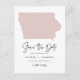 Blush Pink Iowa Map Modern Script Save the Date Announcement Postcard