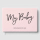 Blush Pink Keepsake Script Baby Book for Mother features a minimalist and elegant design, perfect for preserving a mother’s love and memories. The black text on a soft blush pink background adds a timeless touch, with “My Baby” in script and the child’s name with Est. 20XX in a modern sans-serif font. The spine reads “A book of moments & memories”, while the back cover carries the heartfelt message “With all my love, Mum.”