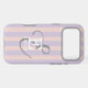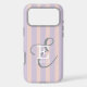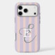 Feminine blush pink and lavender vertical stripes have an elegant stylish representation of your name and monogram accenting this beautiful custom iPhone case. Classic serifs and a more ornate script typography has a beautifully balanced symmetry. The three elements blend together stylishly to create your own personal branding logo. Personalize with your name and initial for a gorgeously unique case.