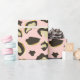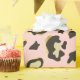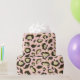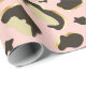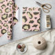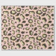 Chic wrapping paper in blush pink with a pattern of brown and golden leopard spots.