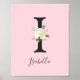 Lovely wall art decor for baby girl nursery in blush pink and large letter 'I'. Watercolor floral pastel beige, ivory, pink colours. Personalise it by adding baby's name. Background colour can be changed. Perfect gift for newborn, baby shower, birthday....